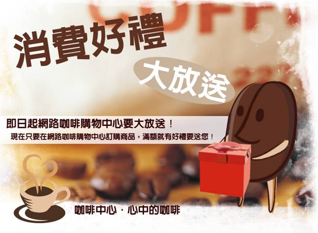 為了回饋會員的支持與鼓勵,由coffee center統籌提供消費滿額贈,各店家不需再提撥。凡在本站每張訂單購滿店家預先設定的訂單金額,會員可在每一次訂單送出前獲得『累積集點兌換贈品』或『消費滿額抵現金』二選一。