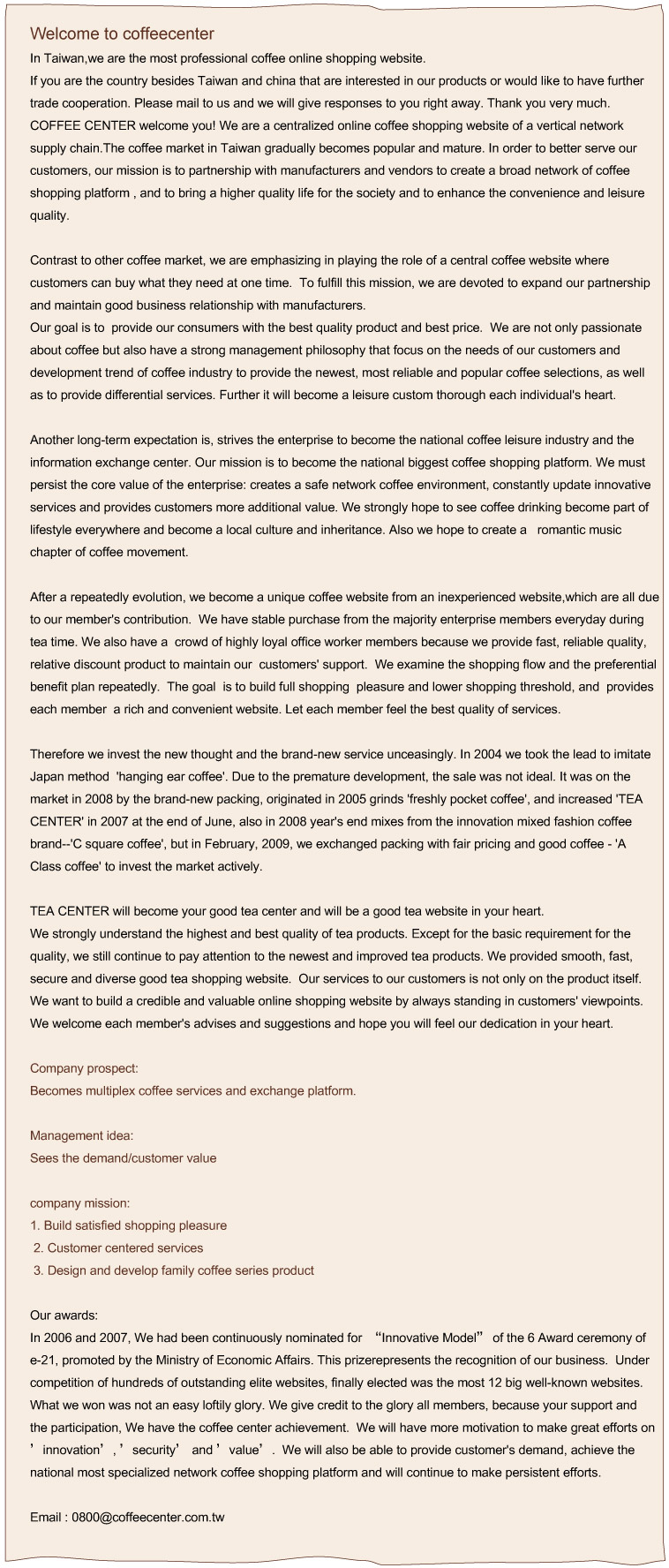 Copyright © 2007 COFFEE CENTER CO., LTD. All rights reserved. 版權所有˙轉載必究