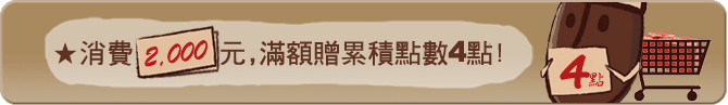 為了回饋會員的支持與鼓勵,由coffee center統籌提供消費滿額贈,各店家不需再提撥。凡在本站每張訂單購滿店家預先設定的訂單金額,會員可在每一次訂單送出前獲得『累積集點兌換贈品』或『消費滿額抵現金』二選一。
