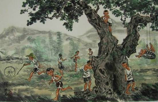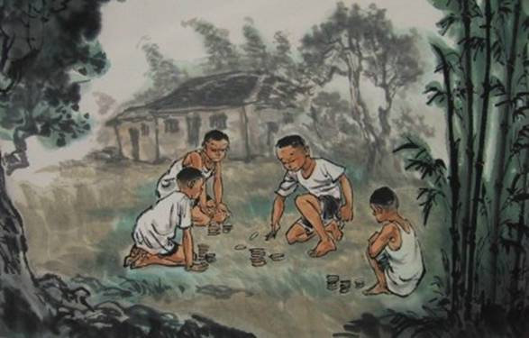 過去的孩子們沒有玩具..祇能利用玩伴來玩遊戲....