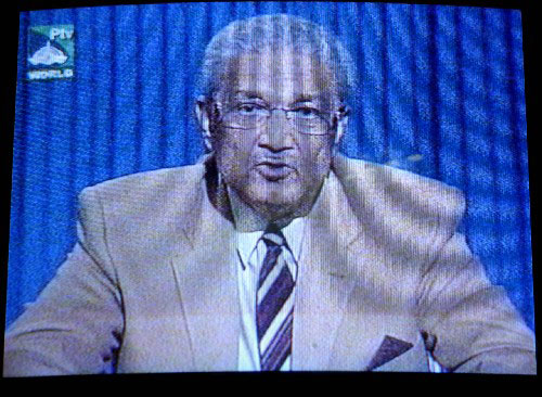 這是巴基斯坦“核彈之父”卡迪爾·汗,2004年2月4日在巴國家電視臺發表電視講話的電視照片。卡迪爾·汗在講話中宣佈對核泄密事件負全責,並就此向巴基斯坦全國人民道歉,請求巴人民原諒。 新華社/法新
