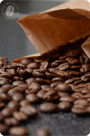 『Notre Histoire de Cafe...』(我們的咖啡故事)這個法文名稱,源自於我們對咖啡的熱愛。?確保品質及風味,由經驗老道的師傅親身操刀自家烘焙,嚴選咖啡分級,使用日式烘焙手法,堅持採用中小型烘焙機小量精緻烘焙,100%留住咖啡原始風味,小包裝是為了避免氧化過快,維持新鮮度,讓喝咖啡沒有壓力,也能讓顧客期待每一袋咖啡打開時的驚喜。