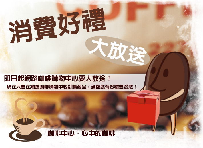 注意事項: 1、『咖啡書籍』類商品由於成本較高,已不再提供滿額贈之累計。 2、『限量商品』及『特價商品』亦不提供滿額贈之累計。 3、『咖啡機議價』成交者、『咖啡豆買五送一』『團購優惠』優惠者, 不再提供消費滿額好康三選一。