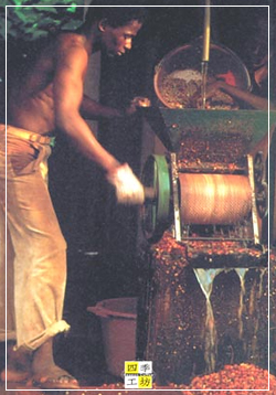 發酵作用可以在水中或乾燥狀態下進行,也可以進行混合發酵,就是在開始的階段中進行濕式發酵,使其迅速酸化,以保護酵母菌,然後浸泡于水中,進行濕式發酵。發酵時間的長短依氣候條件及咖啡豆的狀況而異,在低海拔地區,發酵時間較短,高海拔地區的時間較長,約需48~72小時。添加果膠水解酵素可以縮短發酵時間,當咖啡豆不再其有沾黏性即可。 當發酵完成以後,即進行洗滌,將黏質物質完全去除。於瀝幹後進行乾燥,使水分由60﹪降至50﹪左右,也可以在陽光下曝曬2至3天,使水分降至45﹪,再進行最後階段的乾燥,自然或人工乾燥均可,但乾燥溫度最好不要超過55。C,其最終的水分含旦應在I2﹪以下。