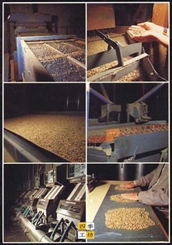 主要利用風選或重力分離的方式,將比重較輕之變形、變色或有病蟲害之生豆加以分離。 |