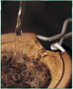咖啡萃取系統主要可分為浸透套組式、逆向連續螺旋萃取式及階段式濃漿萃取系統。以浸透套粗式萃取系統最為普遍 ,將研磨咖啡豆放置於槽中具有分離液體功能之定置床中,利用熱水以逆流的方式萃取,一般設置5~8個萃取槽。其作業流程以六槽式連續萃取系統為例,第一槽為空槽(已排出豆渣),準備進料,熱水由第二槽底部進入,第二槽內所裝之研磨咖啡豆為經過多次萃取 ,將於本次萃取後更換新原料咖啡豆,萃取液則連續萃取其他第三、四、五及六槽之研磨咖啡豆,第六槽為全新裝填槽,如此連續按槽體順序更換原料及排除豆渣。在實際作業上,供應熱水之溫度可高達攝氏180度,此高溫熱水經自然熱量損失及咖啡豆之吸熱作用,會使熱水在到達最後裝有新鮮咖啡豆之管柱時的溫度降至攝氏100度;若設備隔熱效果良好,可酌量降低熱水溫度。