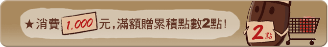 為了回饋會員的支持與鼓勵,由coffee center統籌提供消費滿額贈,各店家不需再提撥。凡在本站每張訂單購滿店家預先設定的訂單金額,會員可在每一次訂單送出前獲得『累積集點兌換贈品』或『消費滿額抵現金』二選一。